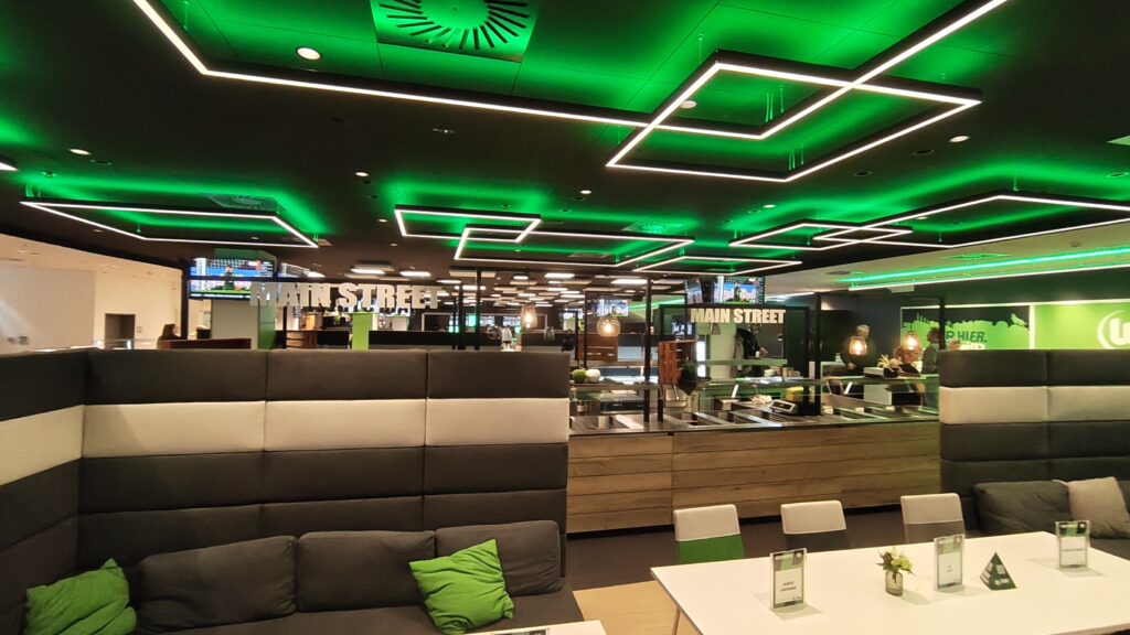 Am Stadion wurden wir gegen 14 Uhr zusammen mit Vertretern des MTV Isenbüttel von Yannis Krüger, seines Zeichens Projektkoordinator für die VfL-Fußballschule und Partnervereine, abgeholt und nach einer kurzen Begrüßung in den Businessbereich des Stadions mit eigens reserviertem Tisch gebracht.